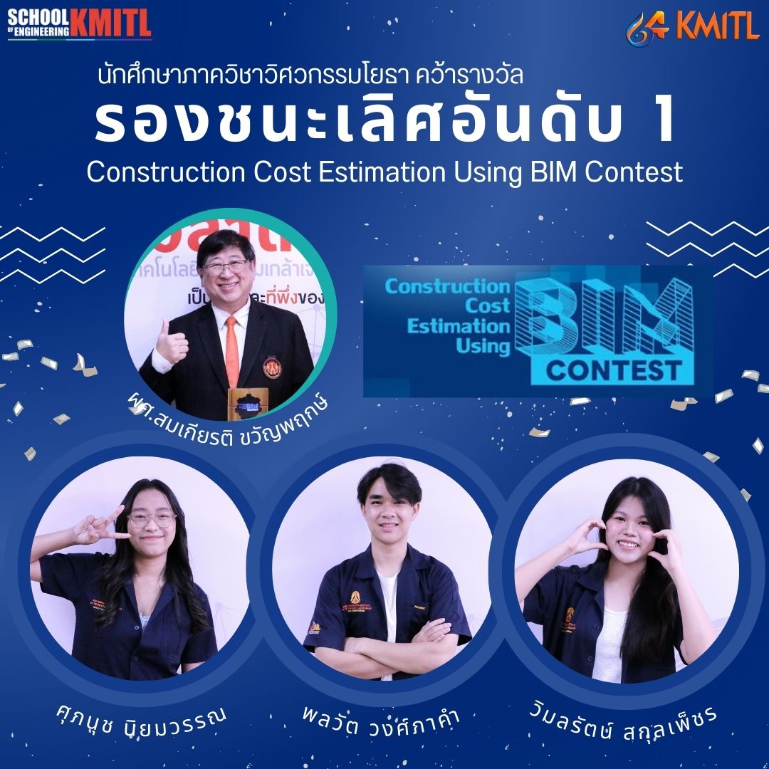 คณะวิศวกรรมศาสตร์ สจล. ขอแสดงความยินดีกับ นักศึกษาภาควิชาวิศวกรรมโยธา ในโอกาสได้รับรางวัลรองชนะเลิศอันดับ1 จากการแข่งขัน Construction Cost Estimation Using BIM Contest ครั้งที่ 3 ในงาน ENGINEERING EXPO 2024