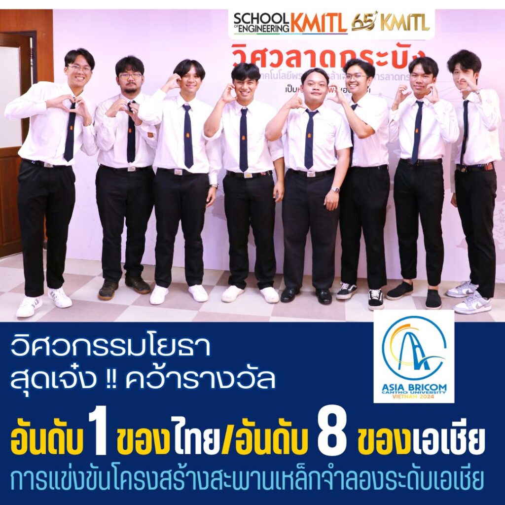 วิศวกรรมโยธา #วิศวลาดกระบัง สุดเจ๋ง !! คว้าคะแนนรวม อันดับ 1 ของไทย/อันดับ 8 ของเอเชีย จากการแข่งขันโครงสร้างสะพานเหล็กจำลองระดับเอเชีย Asia Bridge Competition 2024